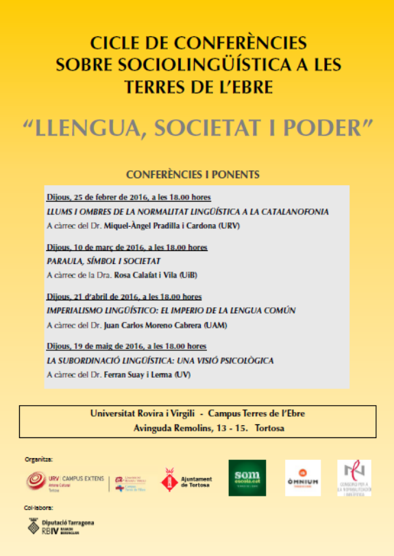 “Llengua, societat i poder”: cicle de conferències sobre sociolingüística a les Terres de l’Ebre