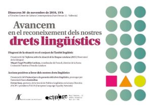 Acció Cultural del País Valencià (ACPV) presenta demà, dimecres 30 de novembre, en un acte que tindrà lloc a les 19 h a la seu de l’entitat a València, l’Octubre Centre de Cultura Contemporània (OCCC), dos informes referits a la situació de la llengua catalana i els drets lingüístics.